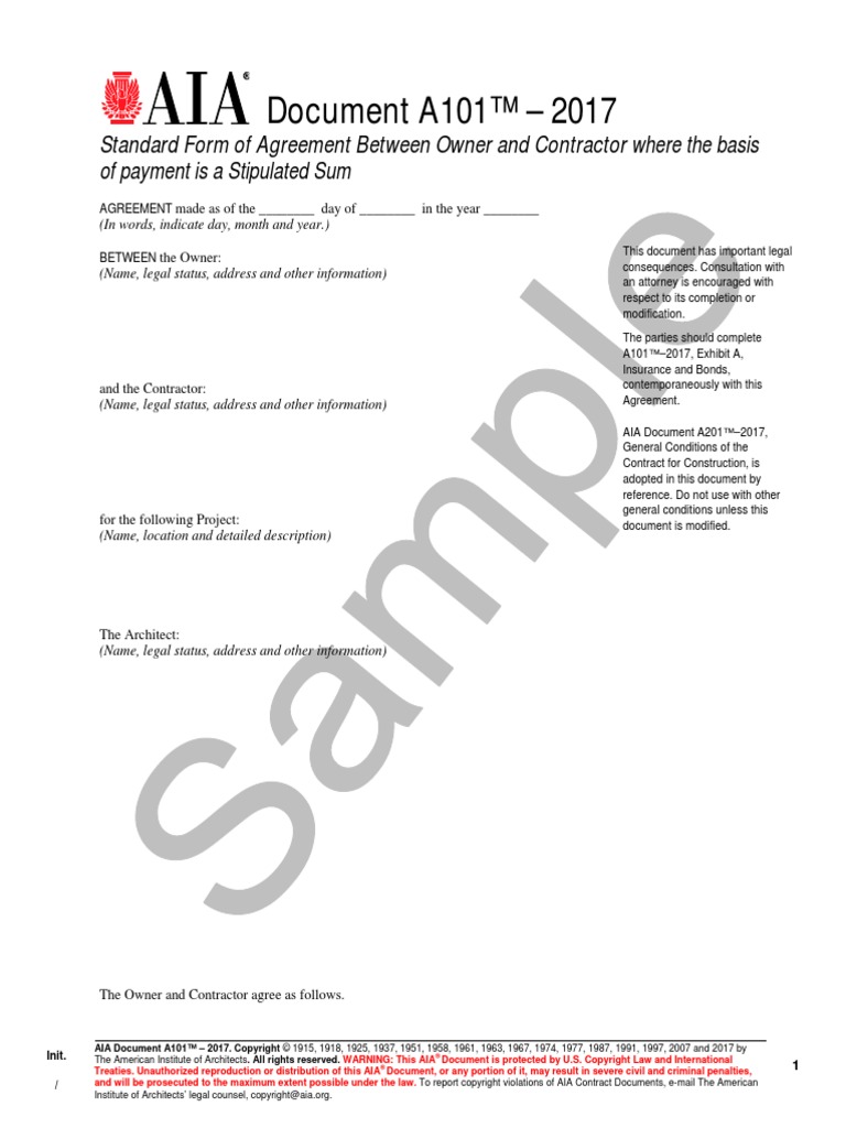 AIA Document A1012017 (Sample) Private Law Virtue